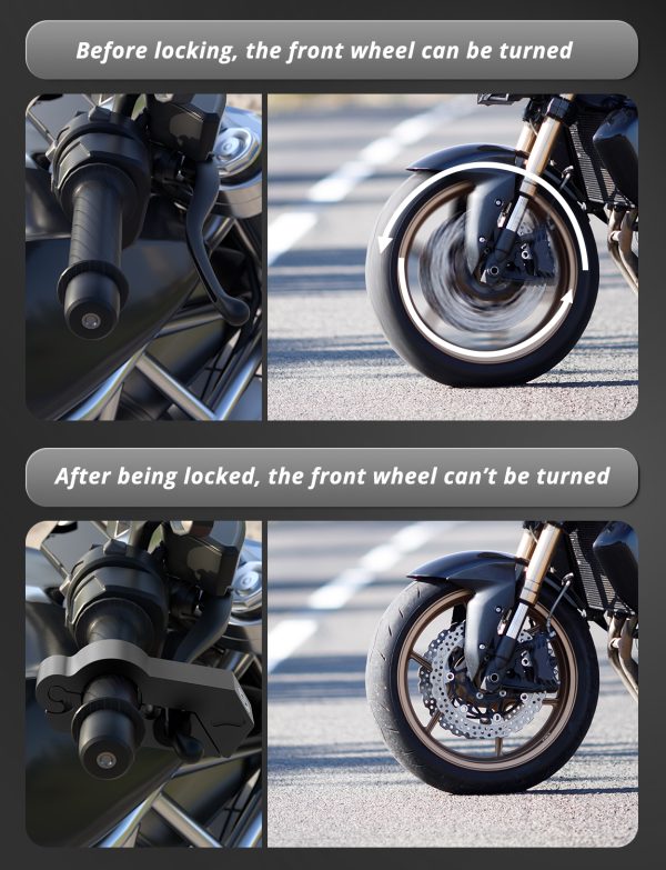 - Wide applications: Our anti theft motorcycle locks are suitable for handlebar diameter is no more than 1.45 inches, can easily fit on Motorcycles, Sports Bikes, Scooters, Mopeds & ATV’s.